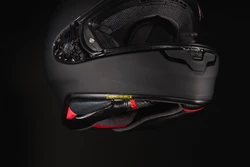 The integrated spoiler in the back of the head stabilises the helmet at higher speeds. The compact and aerodynamically optimised design of the SHOEI NXR2 reduces its wind resistance and lift tendency even further compared to the already low values of the predecessor model. This effectively relieves the rider's neck muscles and reduces the fatigue effect even on longer rides.