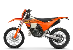 Specifically engineered for longitudinal rigidity, the KTM Enduro range is engineered around a gloss-orange powder-coated frame providing exceptional rider feedback, energy absorption, and high-speed stability. This is achieved by repositioning the rotating masses in the frame along with a forged steering head connection. The footrest mounts also feature a slim design for less risk of hooking up. And when the ride comes to an end, a forged one-piece side stand ensures your enduro weapon stands proud.