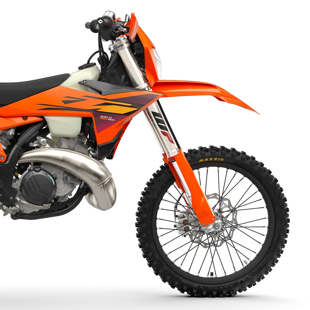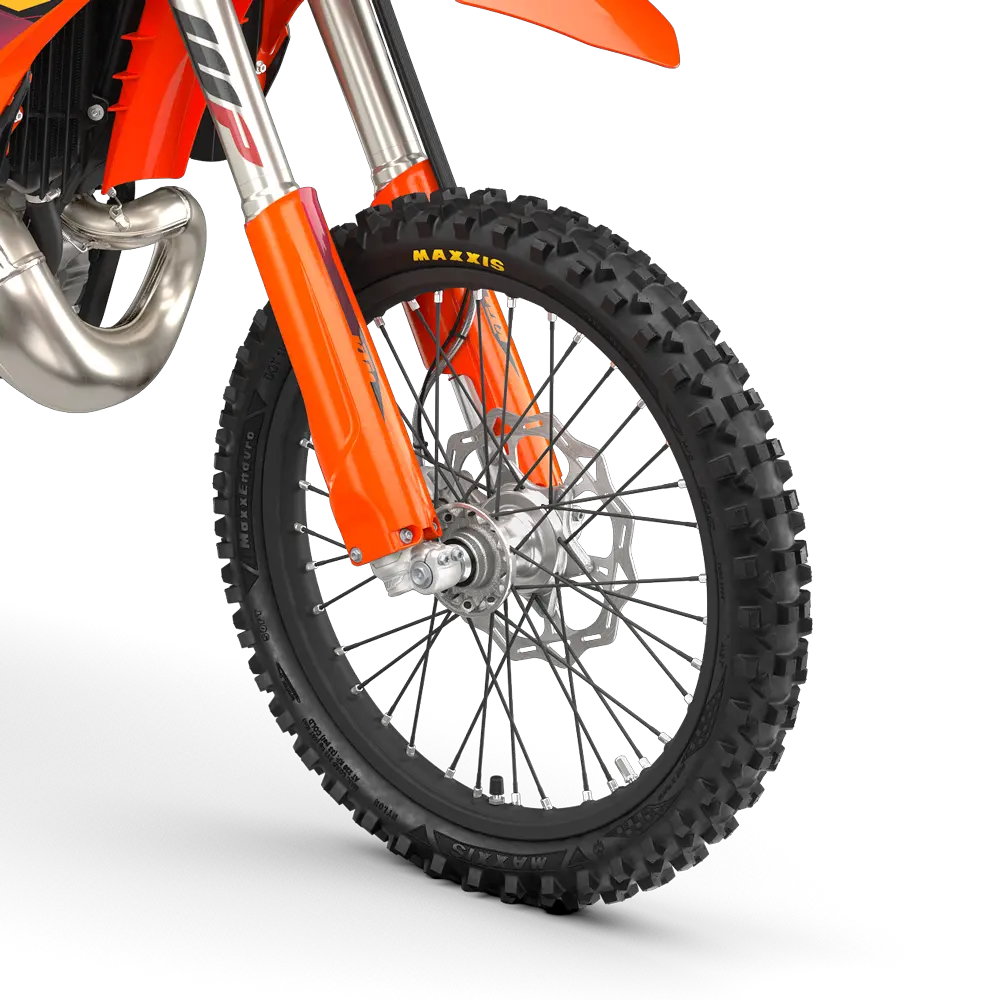 The KTM 300 EXC rolls on a set of high-strength GIANT alloy wheels coupled to CNC-machined hubs and aluminum nipples. These are wrapped in a set of ultra-grippy Maxxis MaxxEnduro tires providing exceptional traction in all conditions.