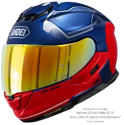 Matching visors for the SHOEI GT-Air3 are available in a variety of different tints and mirror coatings, which can be used in compliance with ECE homologation guidelines. Anti-fog PINLOCK EVO lenses can be fitted in all visors of this type available from SHOEI's range of accessories, one of which is included with the helmet.