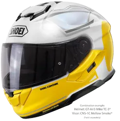 Matching visors for the SHOEI GT-Air3 are available in a variety of different tints and mirror coatings, which can be used in compliance with ECE homologation guidelines. Anti-fog PINLOCK EVO lenses can be fitted in all visors of this type available from SHOEI's range of accessories, one of which is included with the helmet.