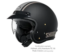 Enjoy your ride with all your senses. The J•O2 offers the pure riding pleasure that only an open-face helmet can provide. Applications made of glossy and nubuck imitation leather, an integrated, multi-adjustable visor and snaps for attaching a helmet peak underline the cool look of this premium jet helmet original from SHOEI.