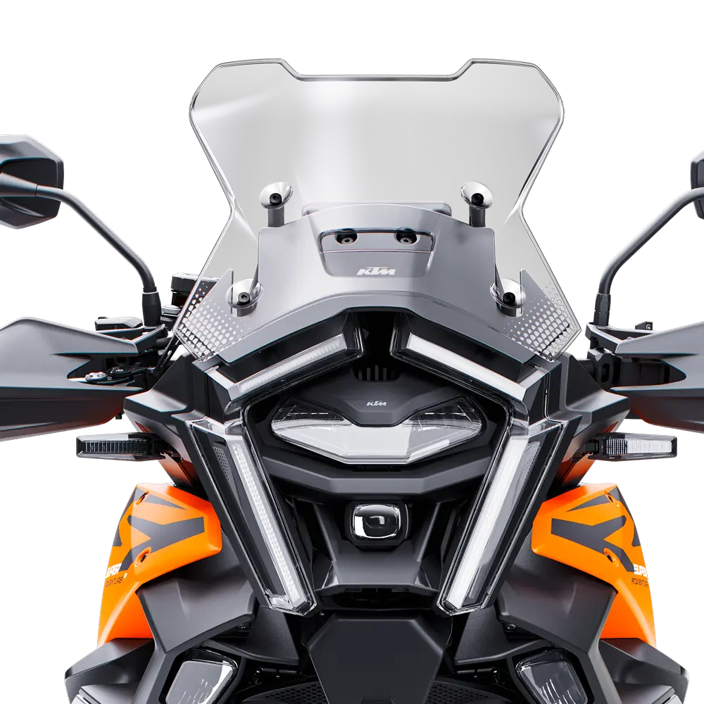 A new adjustable windshield finds its way onto the KTM 1390 SUPER ADVENTURE S EVO, allowing for up to 70 mm of adjustment. Designed in a wind tunnel, this new windshield is quieter, offers more wind protection, and is ready to take on the longest of journeys.