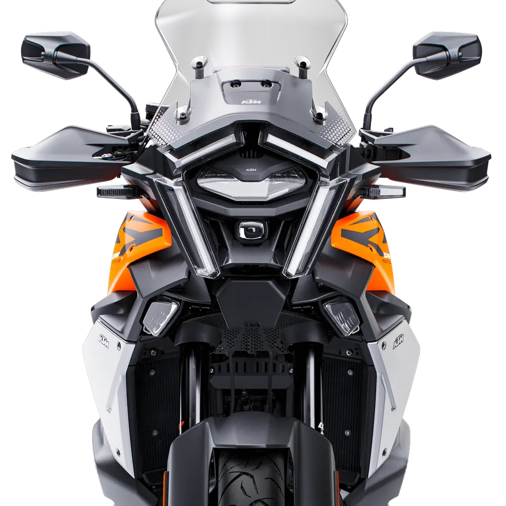 Equipped with a comprehensive suite of cutting-edge technology as standard, including Motorcycle Traction Control, Cornering ABS, customizable ABS modes, KTM Connect, multiple Ride Modes, Front Radar, Tire Pressure Monitoring System, Cruise Control, Keyless System, Semi-Active Suspension, and AMT