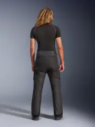 - Durable 450D polyfabric at the front and on the thighs, back yoke, and back of lower legs, combined with durable ripstop reinforcements in high-abrasion areas (such as the seat, knees, and shins) for extra durability.