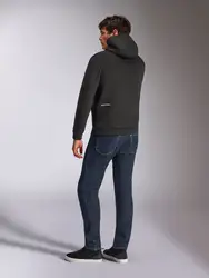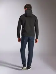 - Zip hoodie, in tri-blend double face fabric, high neck hood, on-seam pockets and sleeve seaming