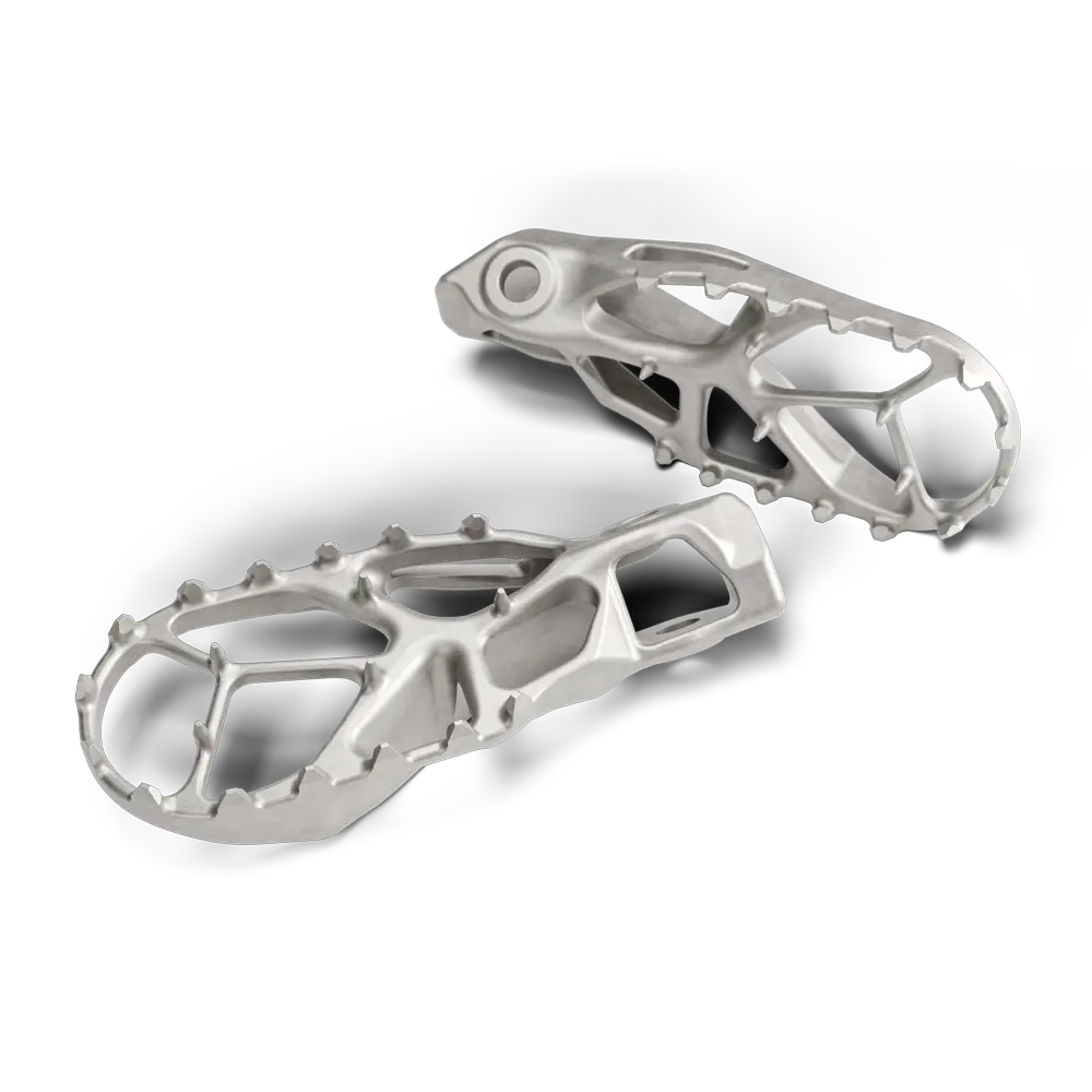 No one enjoys a bad hook-up. Good thing then that the shock absorber geometry on the KTM SX and SX-F machines gives decent ground clearance for the linkage, with the topology-optimized die-cast footpegs being less susceptible to hooking on deep ruts, and take-offs when scrubbing.
