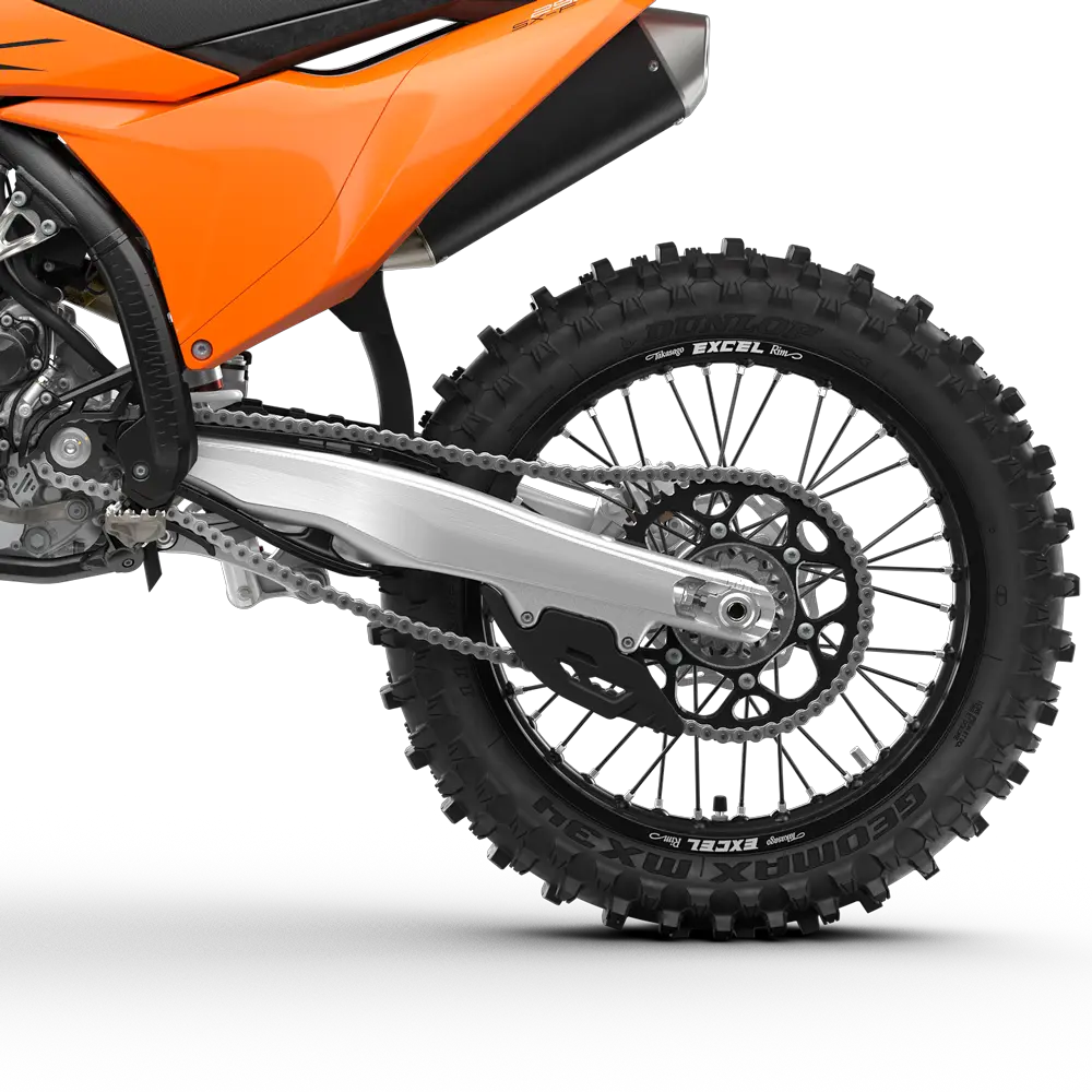 The KTM SX and SX-F range is engineered and designed to provide riders with easy-to-access service parts, as well as suspension adjustability. This permits faster trackside and off-season maintenance, as well as simplifying motocross for novice riders without pit crews.