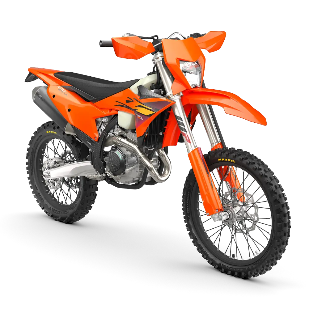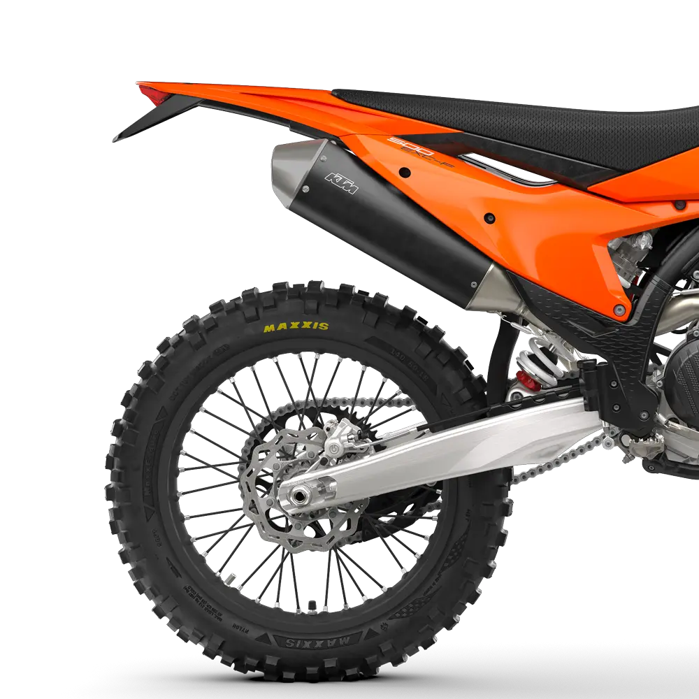 The KTM 500 EXC-F rolls on a set of high-strength GIANT alloy wheels coupled to CNC-machined hubs and aluminum nipples. These are wrapped in a set of ultra-grippy Maxxis MaxxEnduro tires providing exceptional traction in all conditions.