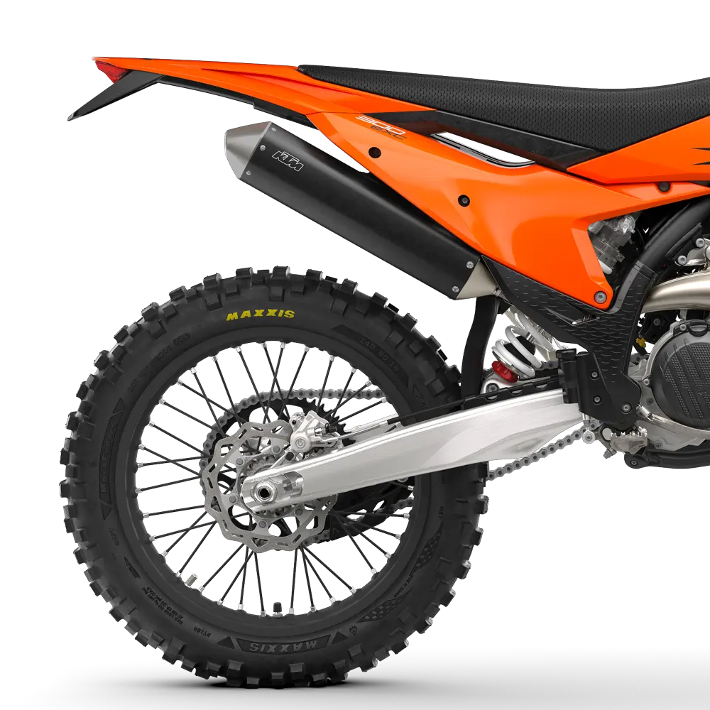 The KTM 300 EXC rolls on a set of high-strength GIANT alloy wheels coupled to CNC-machined hubs and aluminum nipples. These are wrapped in a set of ultra-grippy Maxxis MaxxEnduro tires providing exceptional traction in all conditions.