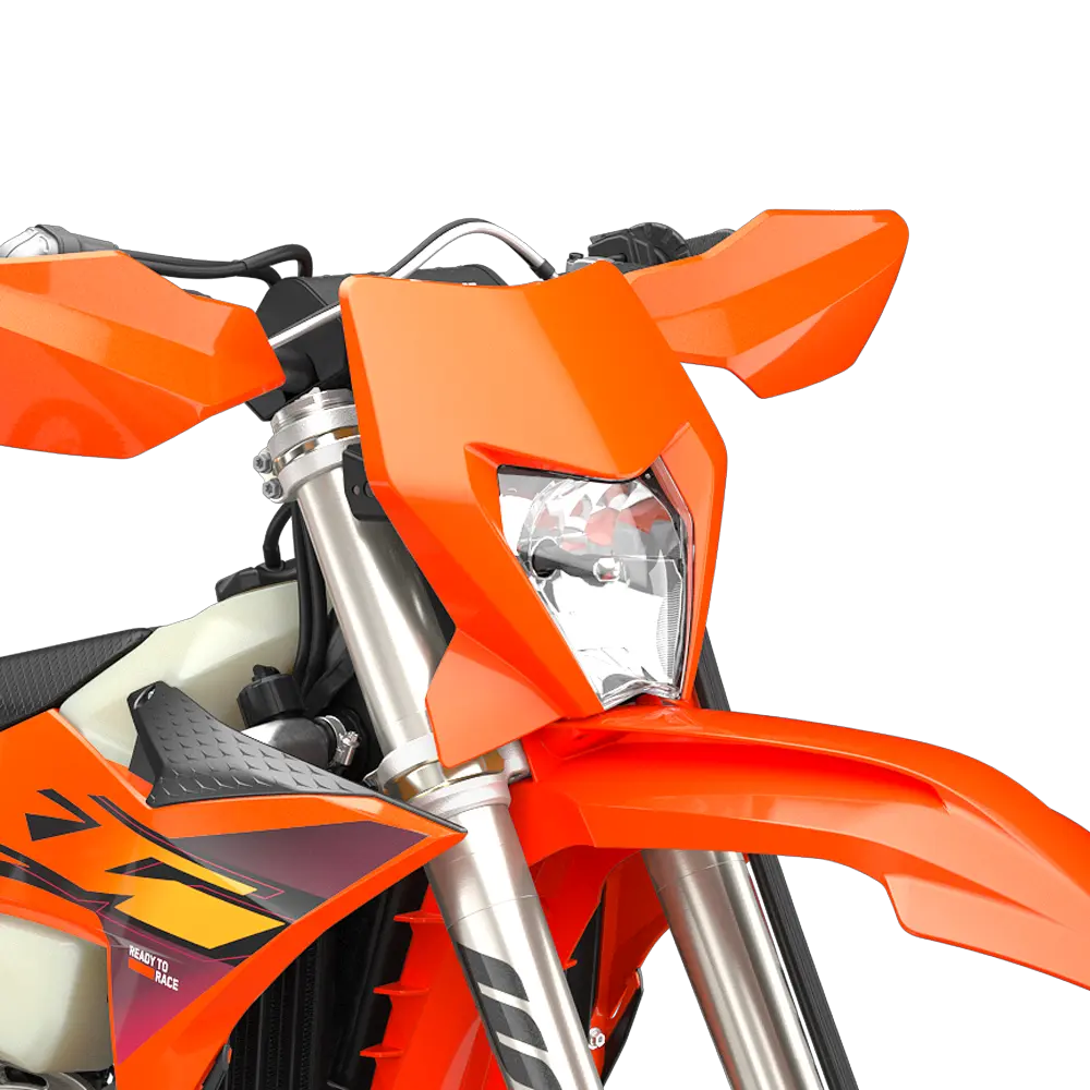 Lighting the way forward, the KTM Enduro range features an LED headlight unit and light mask. The mask itself features improved triple clamp protection against roost and does away with the rubber mounting straps for improved fitment. Most importantly, the LED lighting unit provides serious illumination, making riding in the dark a completely new experience.