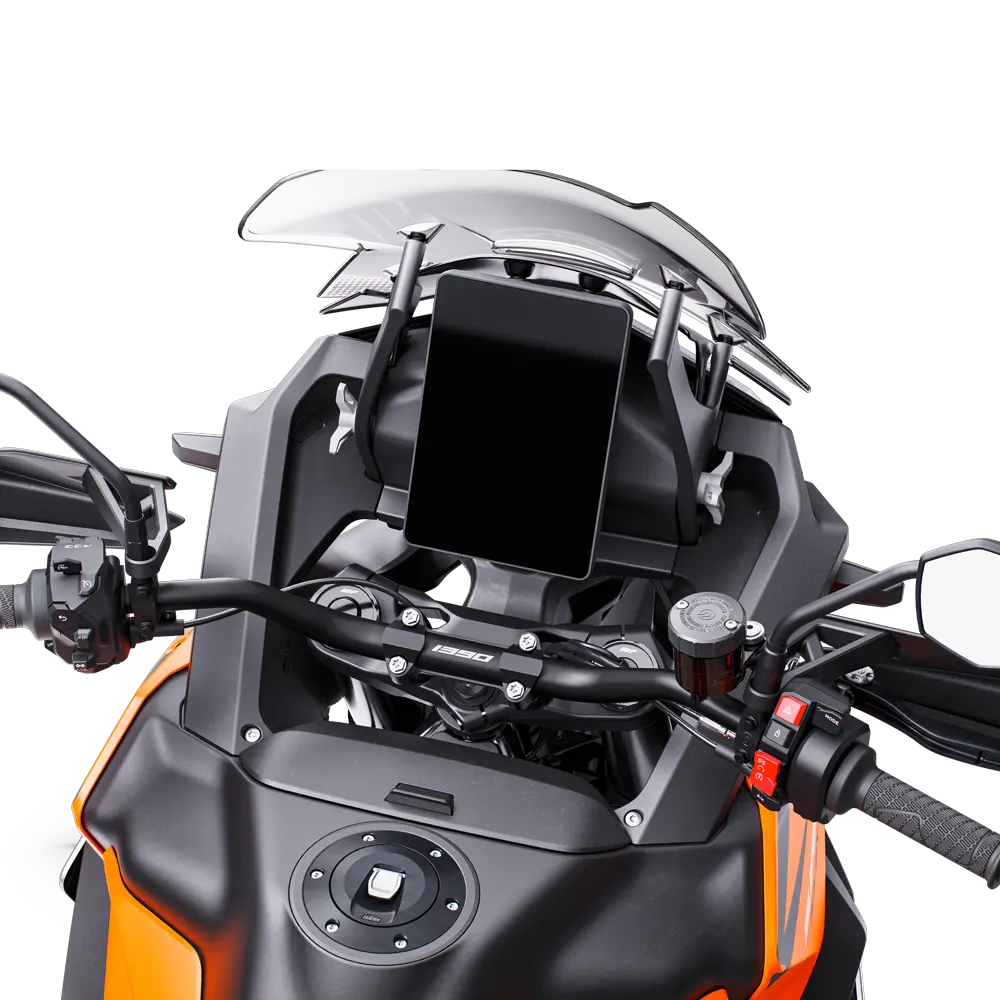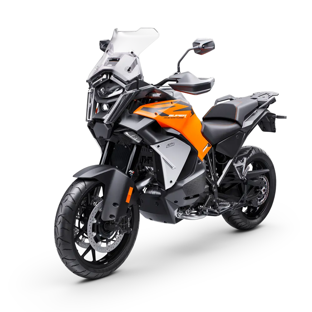 Equipped with a comprehensive suite of cutting-edge technology as standard, including Motorcycle Traction Control, Cornering ABS, customizable ABS modes, KTM Connect, multiple Ride Modes, Front Radar, Tire Pressure Monitoring System, Cruise Control, Keyless System, Semi-Active Suspension, and AMT