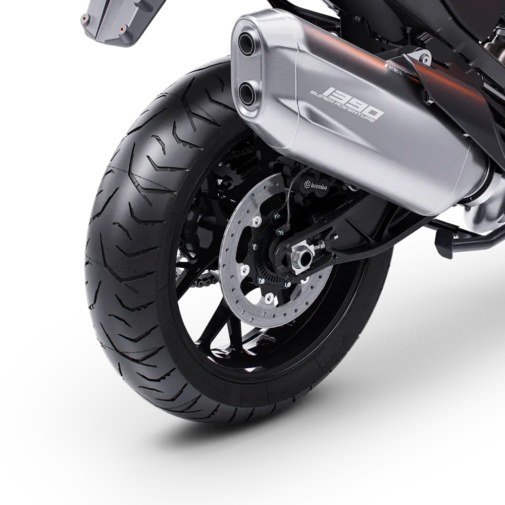 The KTM 1390 SUPER ADVENTURE S EVO has added more stopping power to its arsenal, with new Brembo front master cylinders and new front brake pads. This makes for improved brake performance and a sharper 'bite'.